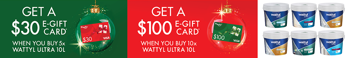 Purchases must be made between 28/11/25 - 12/12/25. Claims must be lodged by 15/12/25. E-gift cards will be provided by 22/12/25. Open to existing Wattyl Trade Account holders (COD or 30 days) excluding PRJ. Purchases can only be made at a Wattyl Paint Centre in New Zealand. Customers are responsible for providing correct details including email address at time of claim. Capped at 3 x e-cards per claim/invoice. All amounts include GST. See win.wattyl.co.nz to claim and for full terms. The Promoter is Hempel (Wattyl) New Zealand Limited (NZBN 9429040733692) of 4-14 Patiki Road Avondale, Auckland NEW ZEALAND.